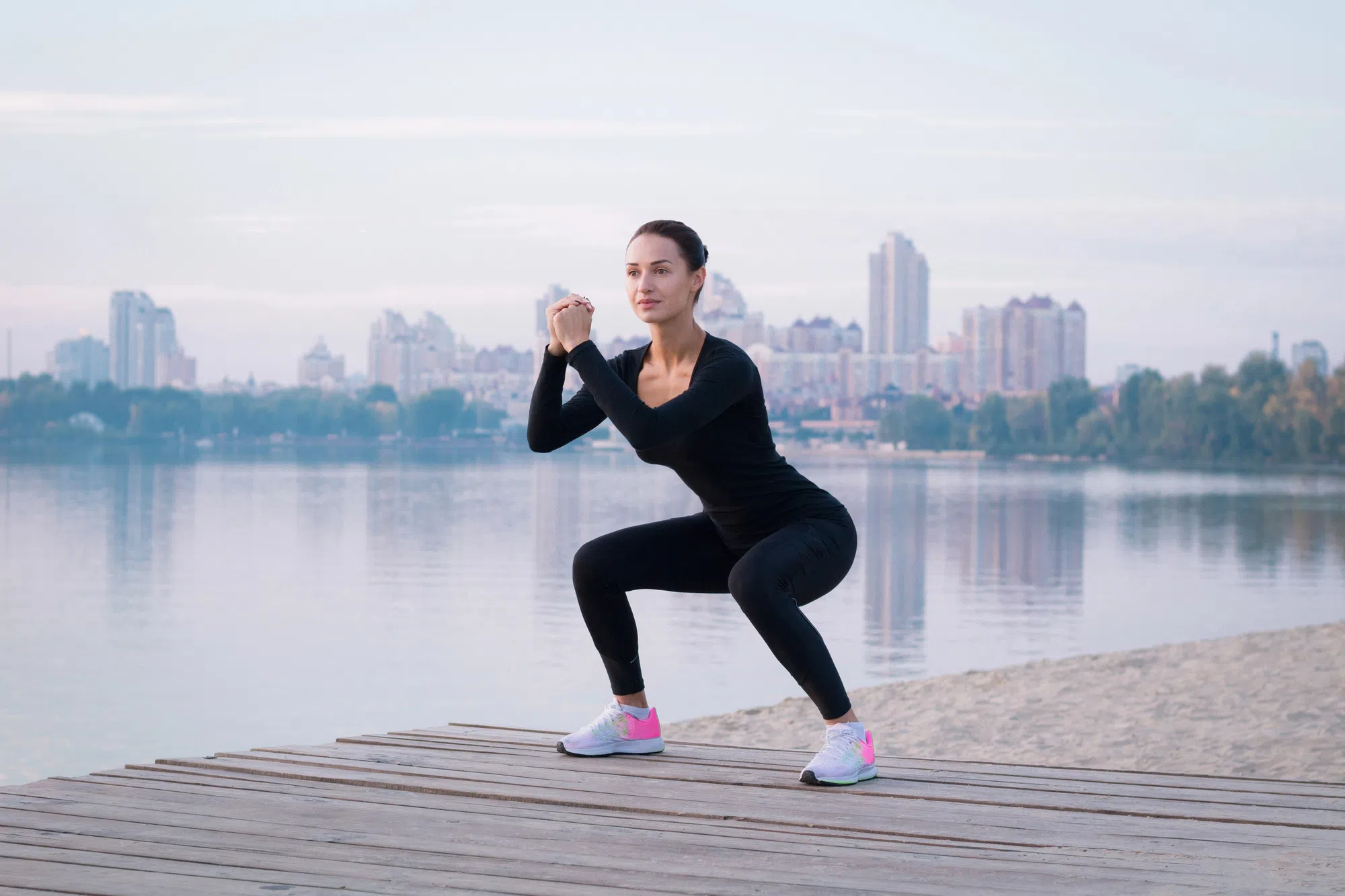 Start with 20 jumping jacks. On the last one, land in a wide squat with your toes turned out and knees aligned over your ankles. Jump up, bring your feet and knees together, and lower into a chair-style squat. That’s one rep. Jump back into the wide squat and repeat.